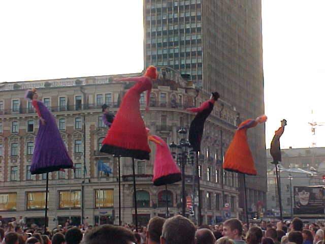 We originally thought these people were puppets because they were swaying back and forth on tall metal poles. Very cool show!