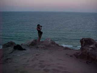Lisa getting the perfect shot on the sand-blo near Rainbow Beach, Australia