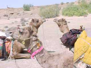 These camels store water in humps on their backs so they can go long distances in the desert, where there is no water.