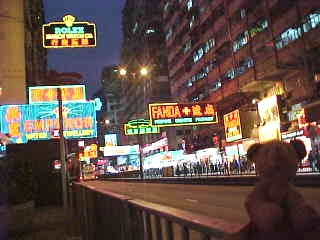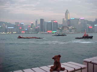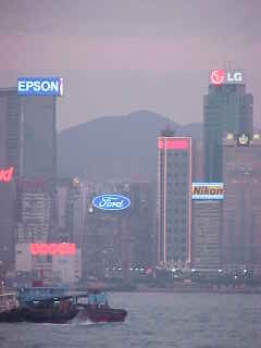 | The Hong Kong Harbor is very busy. There are always ferries, tug boats, barges, and cruise ships going by. Many of the skyscraper have huge neon signs with a company logo. --Little Bear |