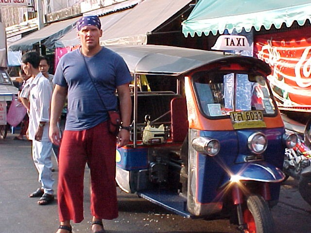 Joel by a Tuk Tuk, Khao San Road, Bangkok, Thailand